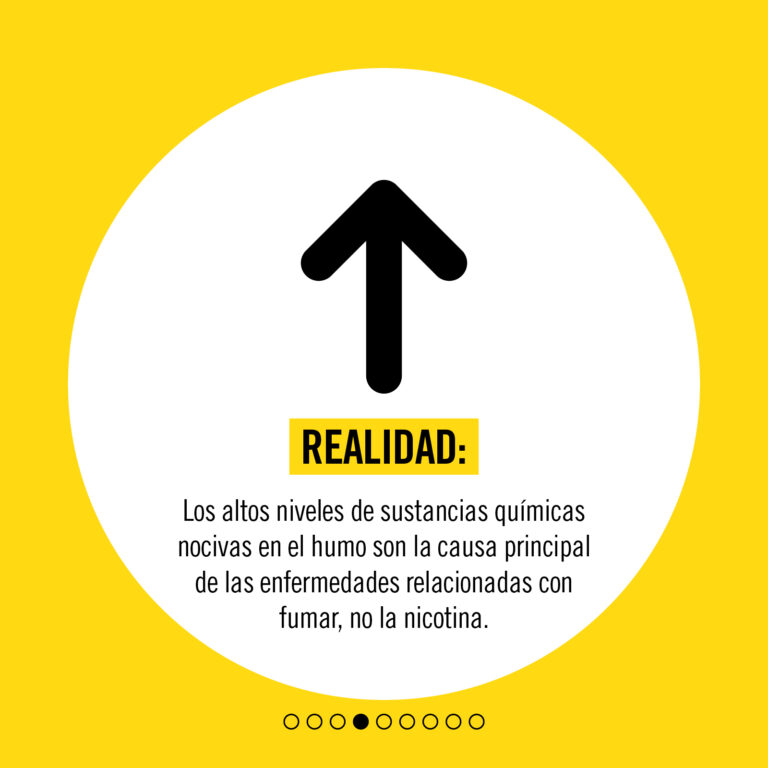 Punto inferior izquierdo: La nicotina es adictiva y no está libre de riesgos, pero no es la causa principal de las enfermedades relacionadas con fumar.